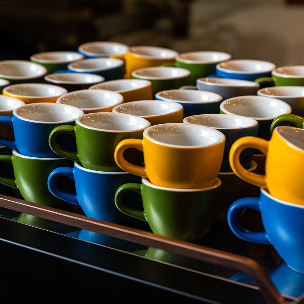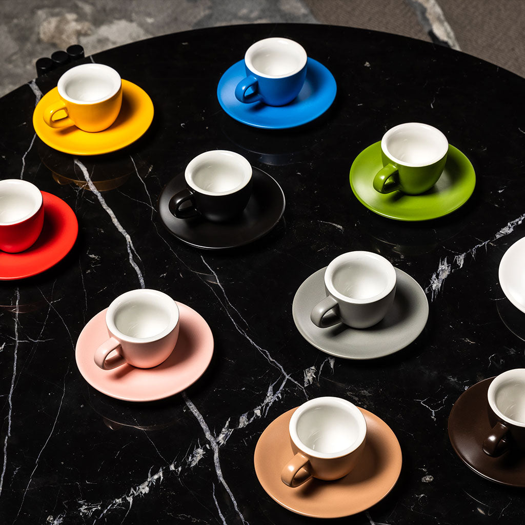 La collezione è composta da 4 pezzi in 4 misure differenti, che vanno dai 70cc della caffè ai 300 cc della latte, inoltre la tazza espresso presenta un doppio spessore per mantenere la giusta temperatura in tazza